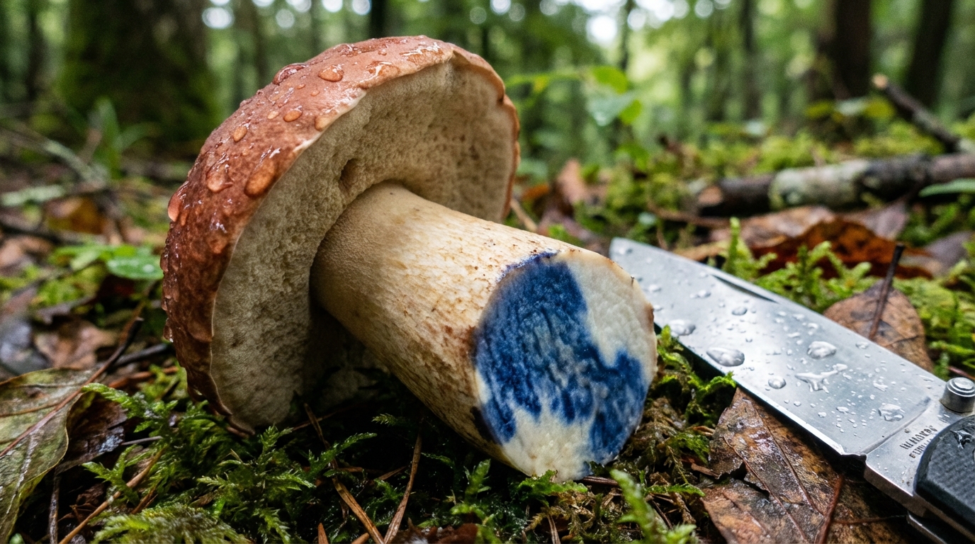 El Lanmaoa asiatica se tiñe de azul índigo al contacto con el aire.